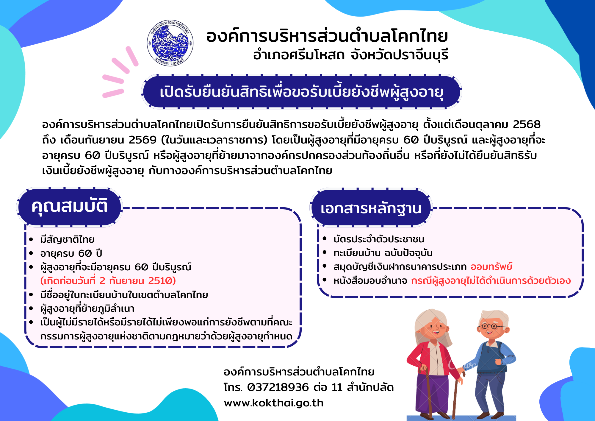 ประชาสัมพันธ์ การยืนยันสิทธิรับเงินเบี้ยยังชีพผู้สูงอายุ 2568