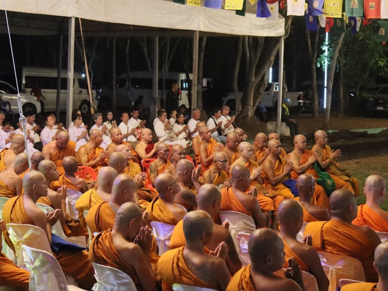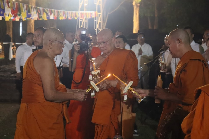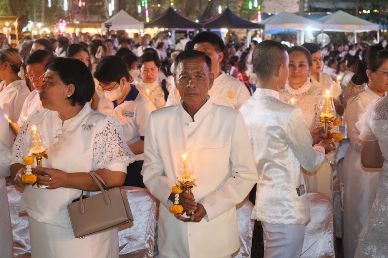 มีการแสดงพระธรรมเทศนา เรื่อง “พระโอวาทปาฏิโมกข์” โดย พระมหาธนศักดิ์ ธมฺมโชโต เพื่อย้ำเตือนหลักธรรมคำสอนอันเป็นหัวใจสำคัญแห่งวันมาฆบูชา จากนั้น ประธานสงฆ์จุดเทียนชัย พระสงฆ์เจริญชัยมงคลคาถา และประธานในพิธีจุดเทียนต่อจากประธานสงฆ์ เพื่อความเป็นสิริมงคล