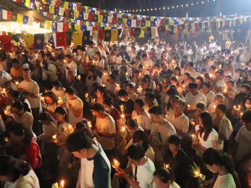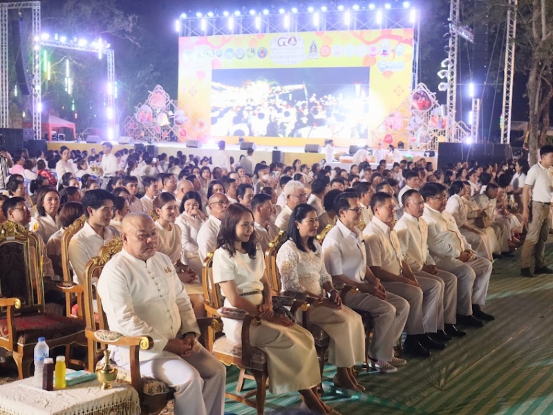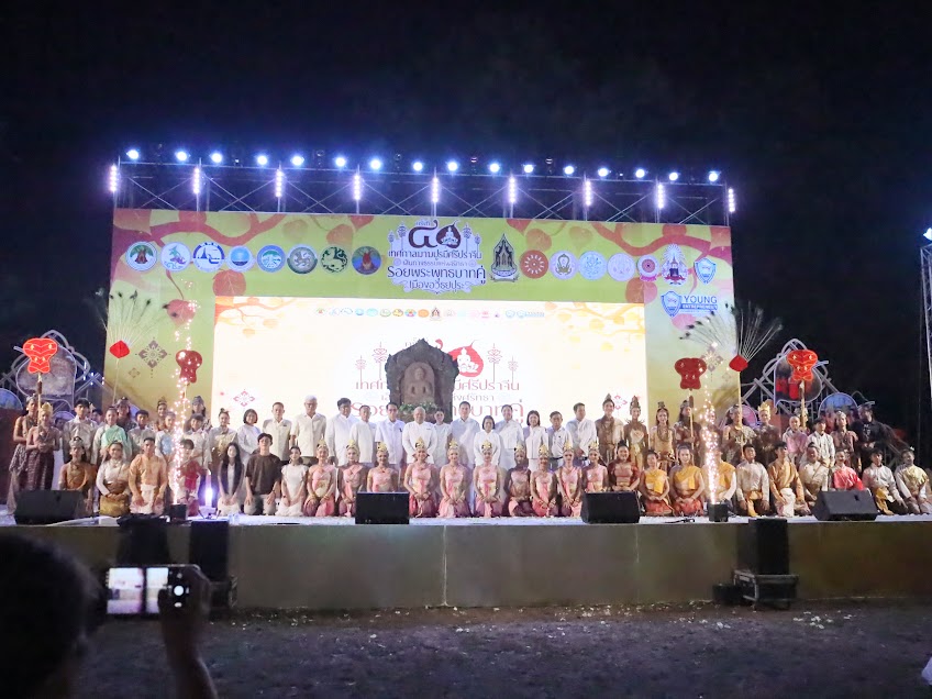 หลังเสร็จสิ้นพิธีเวียนเทียน ผู้ร่วมงานรับชมการแสดง “แสง สี เสียง ย้อนรอยประวัติศาสตร์ เส้นทางธรรมแห่งศรัทธา รอยพระพุทธบาทคู่ เมืองอริยปรุระ”