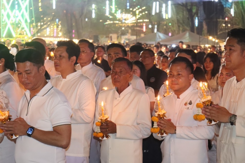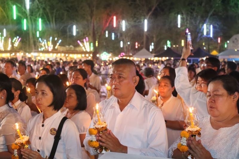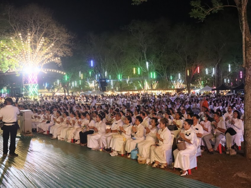 มีการแสดงพระธรรมเทศนา เรื่อง “พระโอวาทปาฏิโมกข์” โดย พระมหาธนศักดิ์ ธมฺมโชโต เพื่อย้ำเตือนหลักธรรมคำสอนอันเป็นหัวใจสำคัญแห่งวันมาฆบูชา จากนั้น ประธานสงฆ์จุดเทียนชัย พระสงฆ์เจริญชัยมงคลคาถา และประธานในพิธีจุดเทียนต่อจากประธานสงฆ์ เพื่อความเป็นสิริมงคล